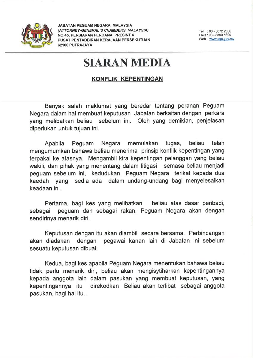 Jab Peguam Negara On Twitter Siaran Media Jabatan Peguam Negara 2 Ogos 2018 Bertajuk Konflik Kepentingan Conflict Of Interest